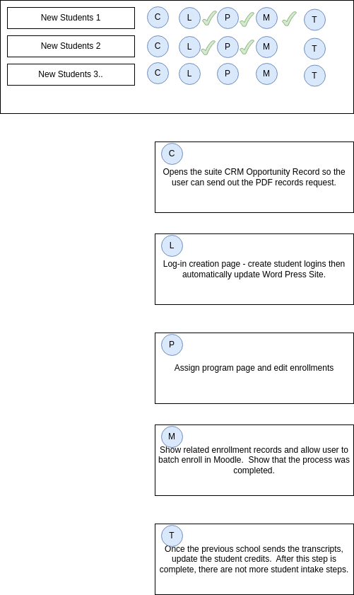 | 12 | CRM | After the parent esigns the document request, the pdf is emailed to the other school to request transcripts. |