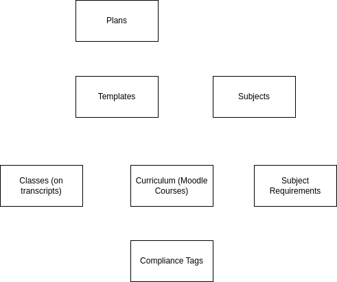 Not only do the regulatory organizations specify the subject requirements, they also must each approve the course description (syllabus). Students are not allowed to meet the subject requirements with any curriculum, they must meet the requirements with curriculum that has been submitted and approved to the organizations. The student's transcript must then show that the class & curriculum has been approved by the various regulatory organizations. So compliance is a property of the Moodle Course. The Moodle Course list in PEMS is called the curriculum table. There is one record in the curriculum table for each course available in Moodle. PEMS lets the administrator tag certain curriculum records with a compliance tag. If a student takes a class, English 9A, and is enrolled in a specific curriculum, or Moodle Course, the compliance tag from the associated Moodle course will appear on the transcript. Compliance tags are deliberately short to fit on the transcript pages.