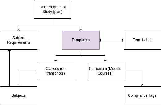 - The template record is related to one term label record, so the template knows in which term the student should take the class.