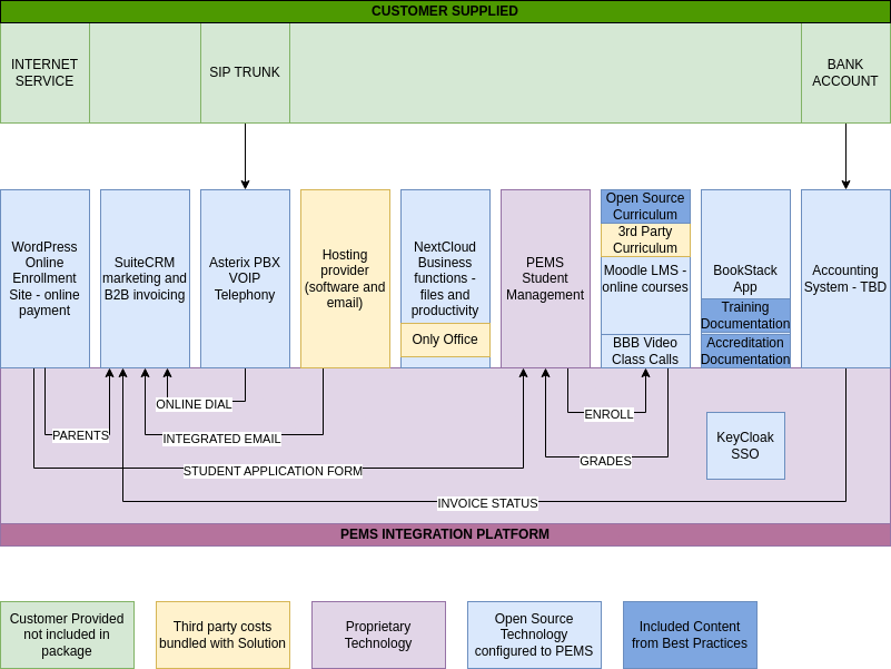 Moodle - LMS pre-configured with all Studia Nova classes, third party subscriptions priced separately but bundled with the solution.